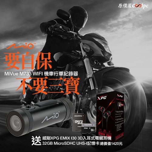 要自保不要三寶,Mio MiVue M733 WIFI 機車行車紀錄器送威剛入耳式電競耳機+32GB 記憶卡!
