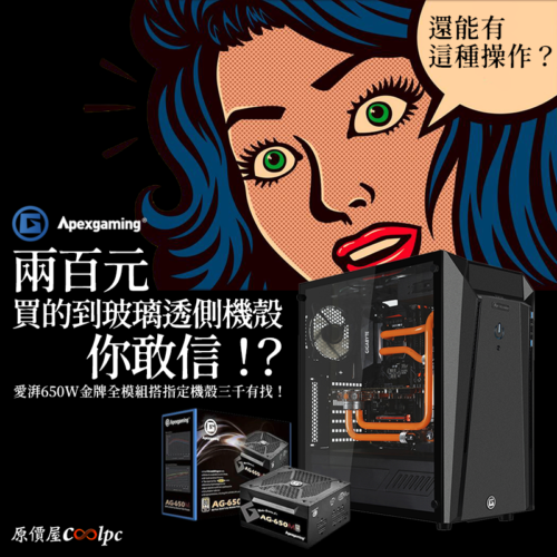 【限量】兩百元買的到玻璃透側你敢信!?Apexgaming 金牌全模組搭ATX 玻璃透側機殼三千有找!