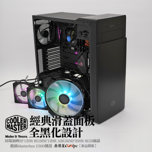 【開箱】經典滑蓋面板、全黑化設計!酷碼 MASTERBOX E500 機殼,同場加映MasterFan RGB風扇。