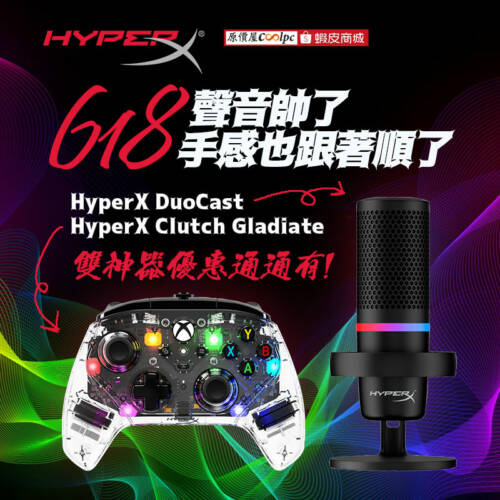 618 聲音帥了,手感也跟著順了!HyperX DuoCast + Clutch Gladiate 雙神器優惠一次帶走!