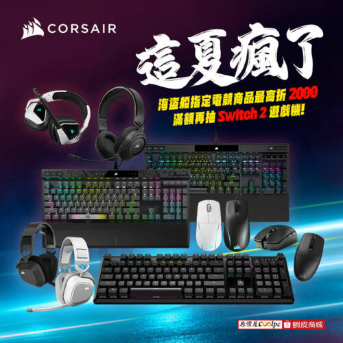 這夏玩家該暴動了!CORSAIR 指定電競商品最高折$2000,再抽Switch 2遊戲機!