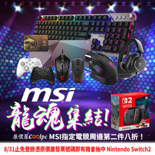龍裝上身才夠猛!MSI 指定電競周邊第二件八折!