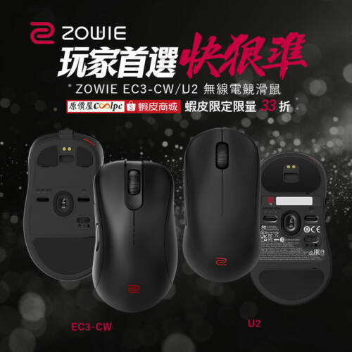 【蝦皮限定】電競玩家首選,搶的就是快狠準!ZOWIE EC3-CW/U2 無線滑鼠限量優惠 33 折!