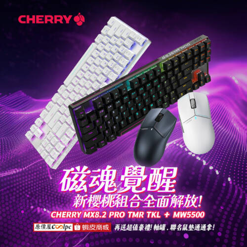 裝備升級沒在客氣!CHERRY MX8.2 PRO TMR TKL+MW5500 新鍵鼠組合限量優惠!
