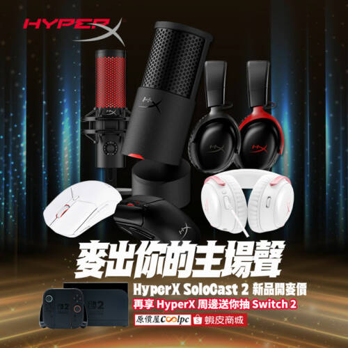 麥出你的主場聲!HyperX SoloCast 2 新品開麥價!再享 HyperX 周邊送你抽 Switch 2!