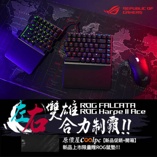 【新品促銷+開箱】左右雙雄,戰場制霸!ROG FALCATA 分離式電競鍵盤×ROG Harpe II Ace 三模滑鼠,新品上市限量贈ROG鼠墊!