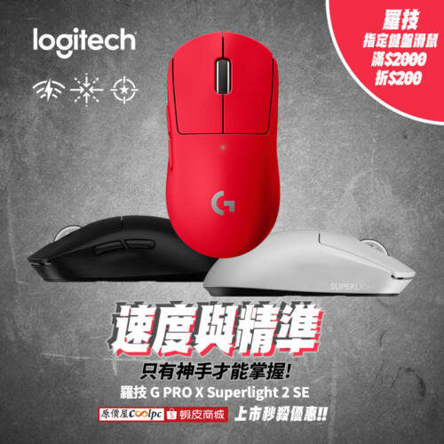 速度與精準!只有神手才能掌握!羅技 G PRO X Superlight 2 SE 上市秒殺優惠!