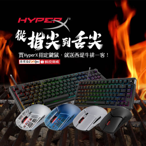 贏下比賽,犒賞自己牛排一客!買 HyperX 指定鍵鼠爽拿西堤牛排禮券!