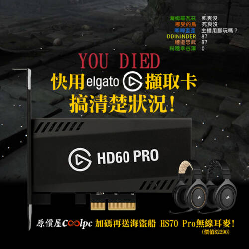 搞不清楚怎麼倒下?那就用elgato HD60 PRO擷取卡搞清楚狀況吧!現賺NT.2290無線耳機。