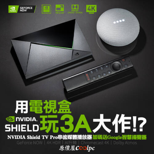 用電視盒就能玩3A大作?! NVIDIA Shield TV Pro 串流媒體播放器送智慧揚聲器。