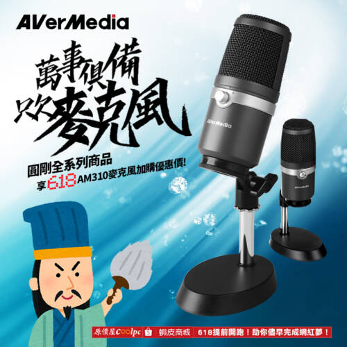 萬事俱備,只欠麥克風啦!圓剛全系列商品享618 AM310加購優惠價!