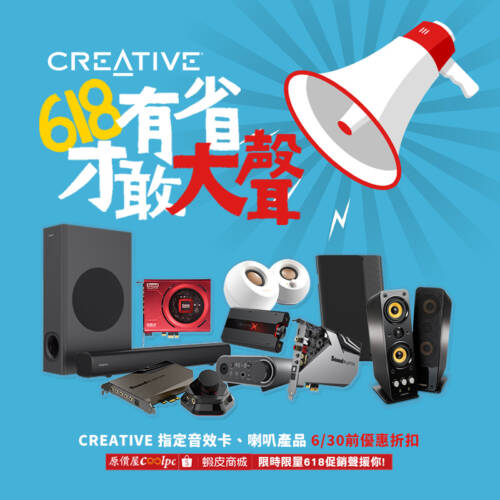 Creative 618 有省才敢大聲!指定音效卡、喇叭產品限量優惠!