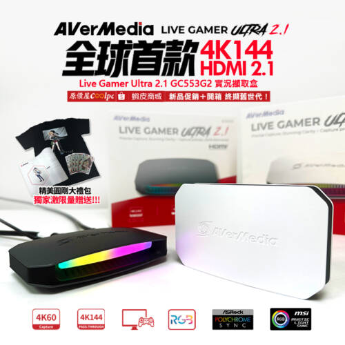 【新品促銷+開箱】全球首款!4K144+HDMI 2.1 終擷舊世代!AVerMedia Live Gamer Ultra 2.1 GC553G2 實況擷取盒上市!
