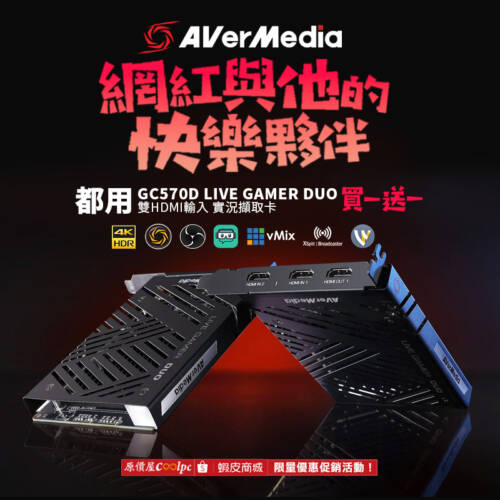 與豪「擷」們紅在一起!圓剛 AVerMedia GC570D Live Gamer DUO 年終特惠買一送一!