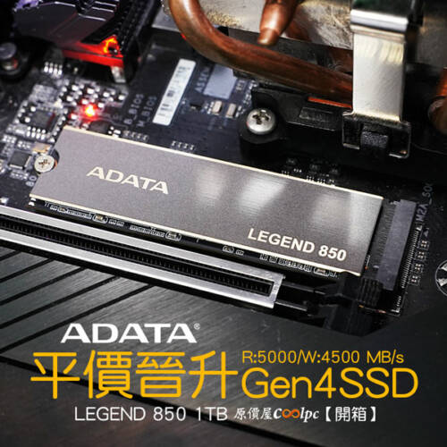 【開箱】平價晉升高速Gen4 SSD!威剛 Legend 850 1TB PCIe Gen4 x4 固態硬碟。