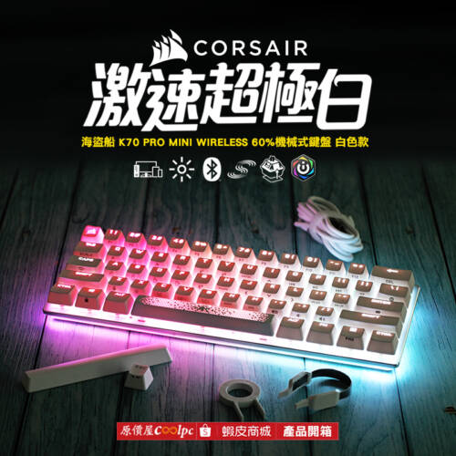 【開箱】海盜戰鍵激速超極白!CORSAIR K70 PRO MINI WIRELESS 60%機械式鍵盤白色款。