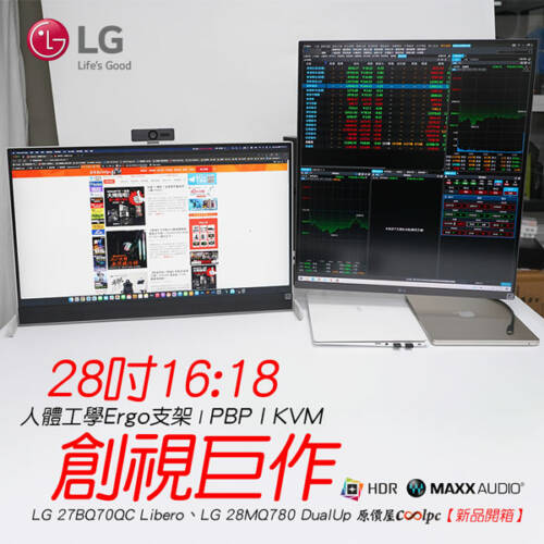 【開箱】全球首創16:18創視巨作!LG 28MQ780 DualUP、27BQ70QC Libero螢幕。