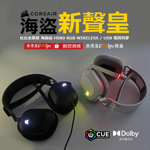 【開箱】杜比全景海盜新聲皇!CORSAIR HS80 RGB WIRELESS / USB 電競耳麥。