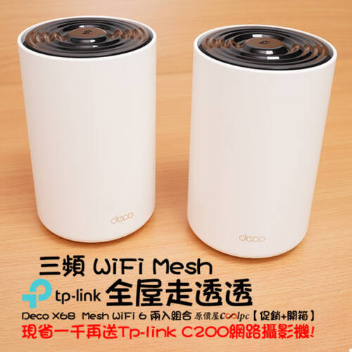 【促銷+開箱】全覆蓋WiFi走到哪玩到哪!TP-Link Deco X68 Mesh WIFi 6分享器送一仟再送網路攝影機。