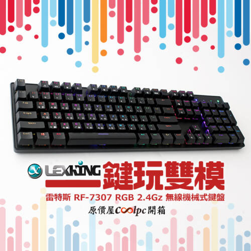 【開箱】一鍵玩雙模!LEXKING RF-7307 RGB 2.4Gz 無線機械式鍵盤。