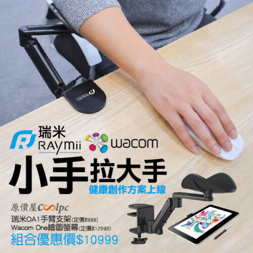 【促銷+開箱】「小手拉大手」健康創作方案上線,Raymii OA1手臂支架+Wacom One繪圖螢幕組合優惠!