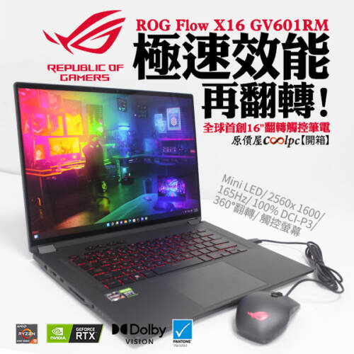 【開箱】R9+RTX3060極速效能再翻轉!華碩ROG Flow X16 翻轉觸控筆電。