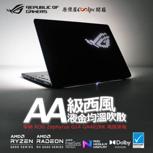 【開箱】AA級西風!均溫吹散!華碩 ROG Zephyrus G14 GA402RK(日蝕灰)電競筆電。