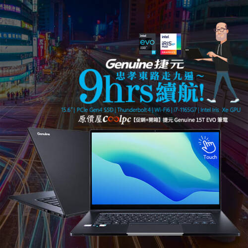 【促銷+開箱】忠孝東路走九遍,Intel EVO 認證 9hrs 續航!捷元 Genuine 15T EVO 筆電現賺 $2500。