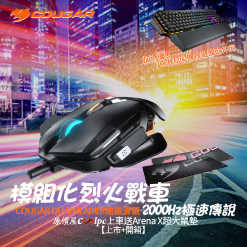 【新品優惠+開箱】模組化烈火戰車,COUGAR DUALBLADER電競滑鼠上市送大鼠墊。