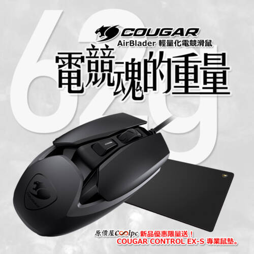 【新品促銷+開箱】62g電競魂的重量!COUGAR AirBlader 輕量化電競滑鼠。