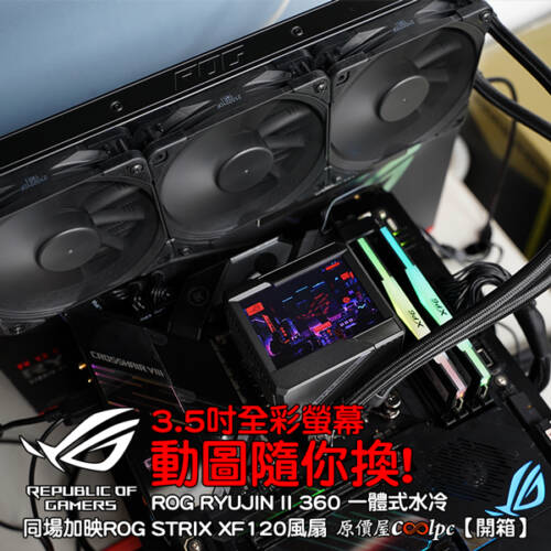 【開箱】3.5吋全彩螢幕,動圖隨你換!華碩ROG RYUJIN II 360 水冷,同場加映ROG STRIX XF120風扇。