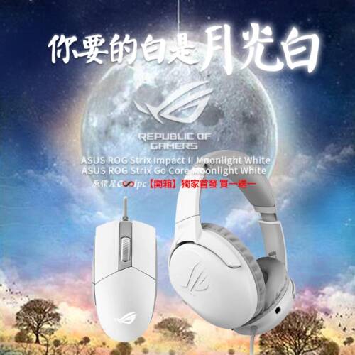 【新品首賣+開箱】ASUS ROG Strix Impact II + Go Core Moonlight White 月光白!優惠太White啦!!