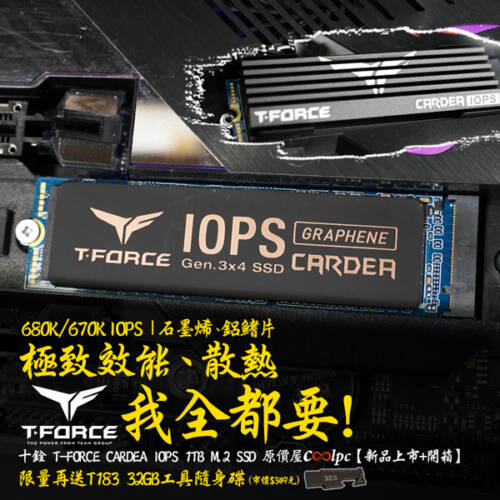 【新品上市+開箱】極致效能、散熱裝置,我全都要!十銓 T-FORCE CARDEA IOPS 1TB M.2 PCIe SSD。