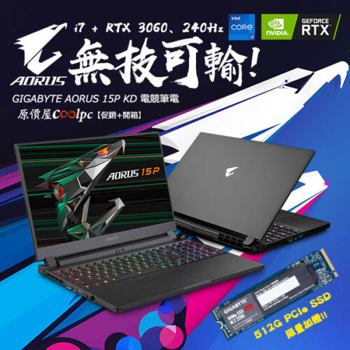 【促銷+開箱】無技可輸的 i7 + RTX 3060、240Hz,技嘉 AORUS 15P KD 電競筆電現賺 512G PCIe SSD!