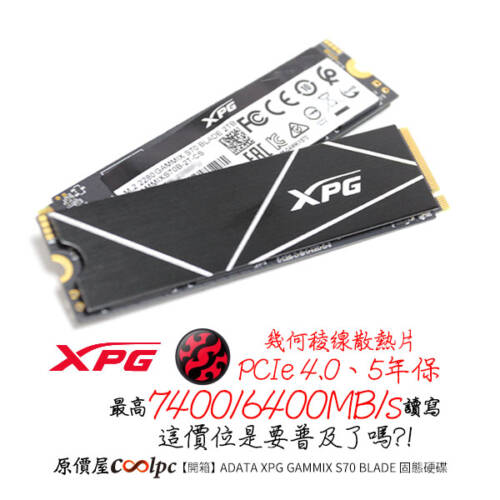 【開箱】7400/6400MB/s、PCIe 4.0 該普及了!ADATA XPG GAMMIX S70 BLADE 固態硬碟。