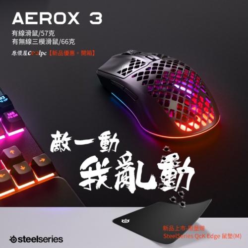 【新品優惠‧開箱】 steelseries AEROX 3 超輕量化有/無線滑鼠,千呼萬喚始出來!
