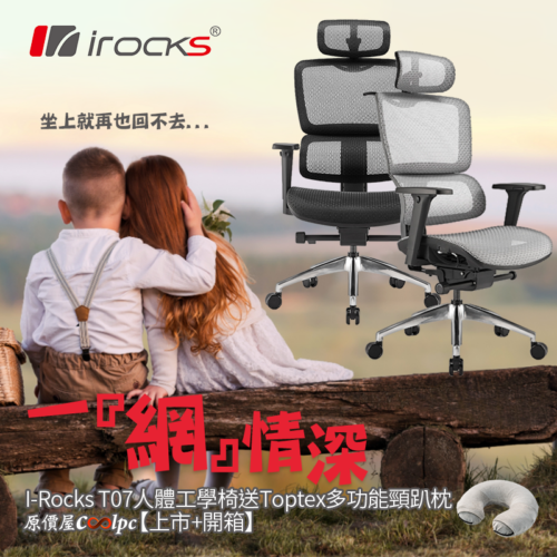 【新品上市+開箱】坐得一網情深。I-Rocks T07人體工學椅送多功能頸趴枕。