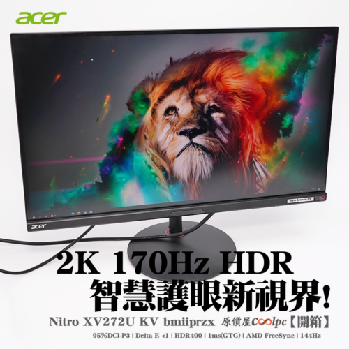 【開箱】2K 170Hz HDR,智慧護眼新視界!ACER Nitro XV272U KV bmiiprzx螢幕。