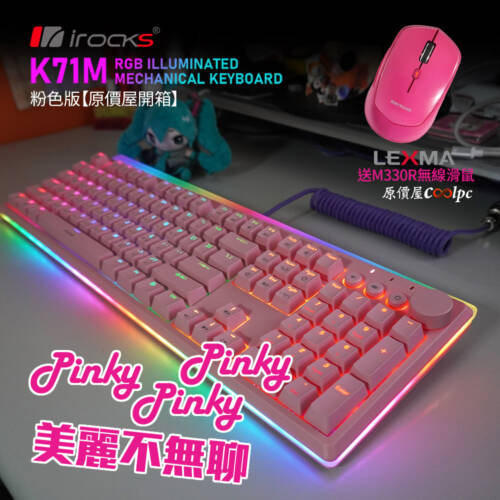 【促銷開箱】pinky,pinky,pinky,三種口味!irocks K71M 粉紅機械式鍵盤送粉紅鼠!