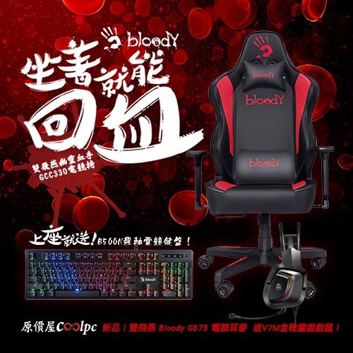 【已結束】坐著就能回血!雙飛燕 Bloody GC 330電競椅/G575電競耳麥 新品優惠!