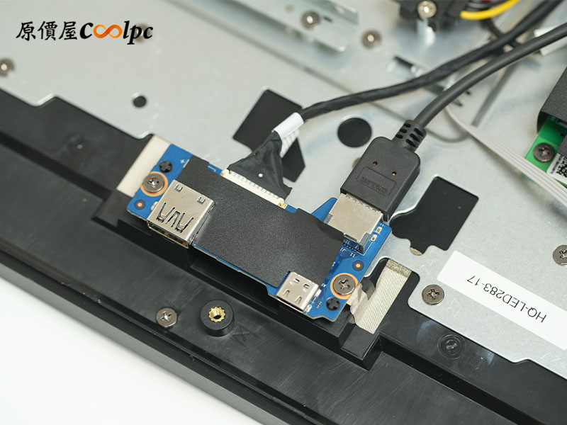 I/O 接口給得滿有誠意的,有電源埠、USB 2.0×2、DP 1.4、HDMI 2.0、RJ-45 網路孔、USB 3.2×2,還有音源與麥克風接口。畢竟它本身就是一台完整的電腦,不是單純的螢幕,所以如果想外接第二台螢幕,打造雙螢幕工作環境也完全沒問題!