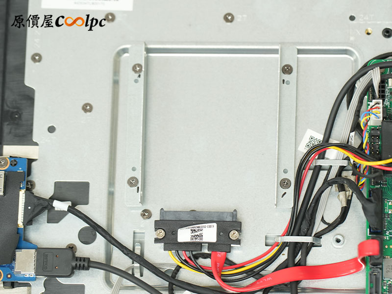 另外主板側邊還可以安裝一顆 2.5″ 硬碟,前面提到的四顆銀色螺絲就是鎖硬碟用的唷。