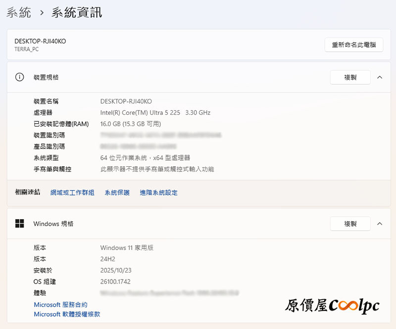 主機出廠時已經預先安裝 Windows 11 家用版 24H2,而且系統非常乾淨,居然完全沒有亂七八糟的工具程式或試用軟體,開機與操作起來都非常順暢,使用體驗很舒服。不過要提醒大家的是,系統雖然有裝,但尚未啟用,需要自行輸入序號才能正式使用,所以記得一起加購一組授權序號唷!