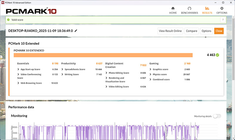 PCMARK 10 獲得 4463 分。