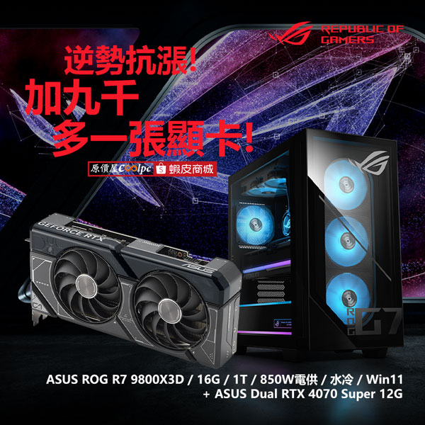 活動內容:ASUS ROG R7 9800X3D / 16G / 1T / 850W電供 / 水冷 / Win11,品牌電腦 $40,990