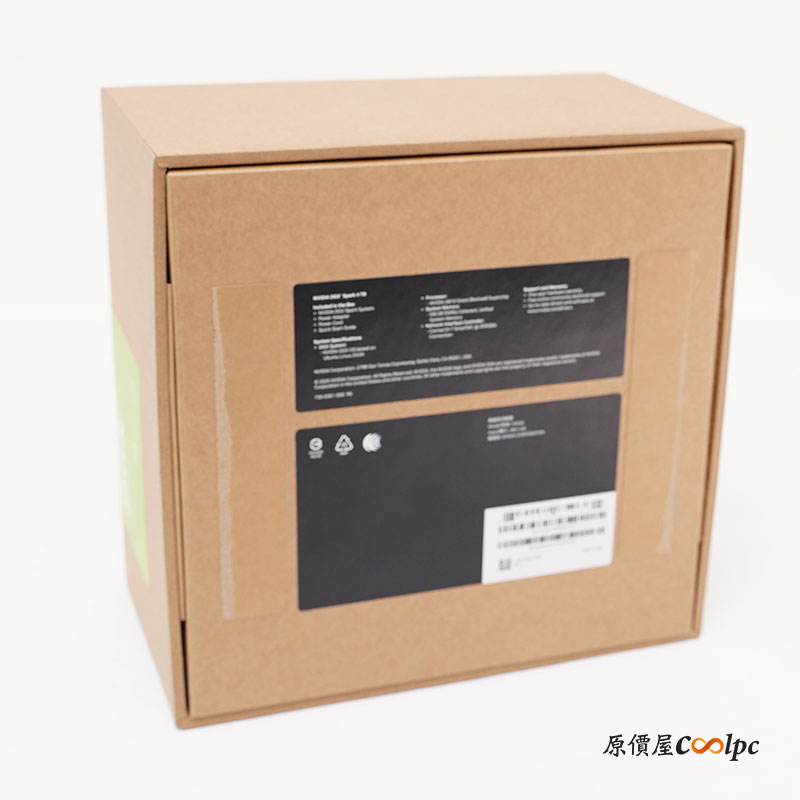 外盒採用環保紙盒設計,上方有貼 NVIDIA DGX Spark 標籤,這台 GB10 就是創始版樣式,目前只有麗臺科技是創始版,其他廠商都是自製的外殼設計。