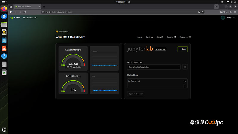 預先安裝好的 DGX 儀表板,可以讓你即時知道記憶體和 GPU 使用負載狀況,相當貼心!剩下的功能就交給玩家們去摸索囉。