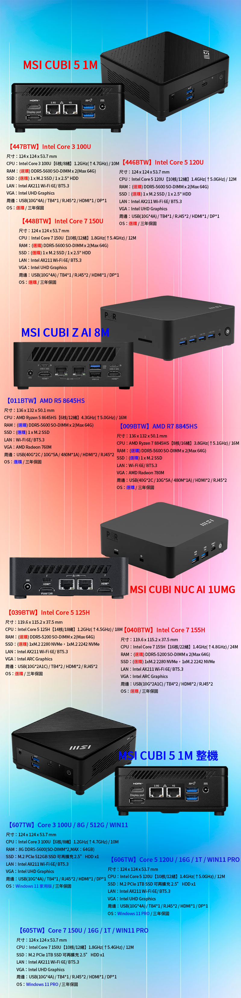 MSI CUBI 5 1M【606TW】Core 5 120U / 16G / 1T / WIN11 PRO $23,900
