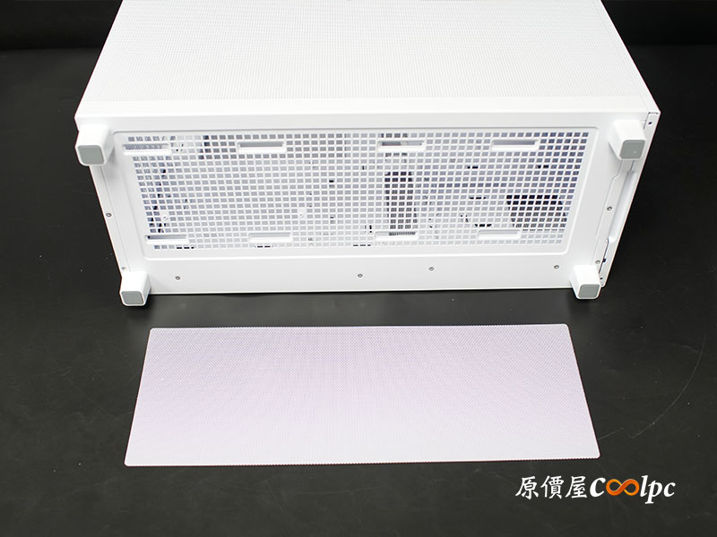底部採全區域開孔設計,並標配磁吸式防塵網。相較於前代,AP303 將此處升級為可安裝 3 組 120mm 風扇的超大進氣量設計,讓散熱上限更上一層樓。