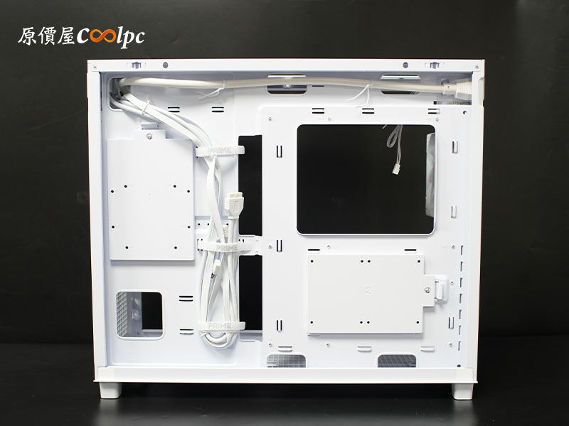 電源倉旁設有可拆卸式理線板,除了在裝機時提供更寬裕的操作空間,最重要的是幫你把亂糟糟的現藏起來~ 角落精緻的 ASUS PRIME CASE 字樣更增添了視覺感。